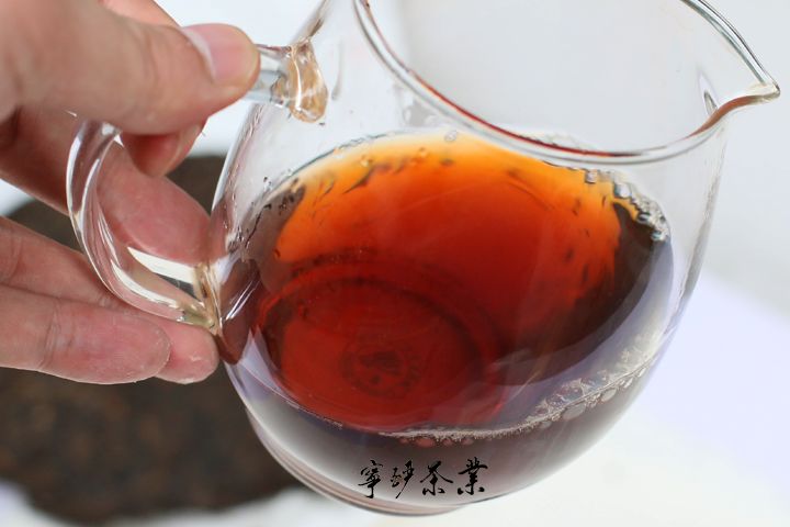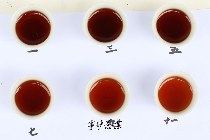 茶汤看起来略显浊,入口新压制的水汽比较明显,勐海香入水,出润感,水路柔细。有较明显的回甘,细品之下带有轻发酵导致的涩感,厚度和茶味的浓强度相对适中。第七泡的时候茶味就已开始明显变淡,出尾水的润甜。